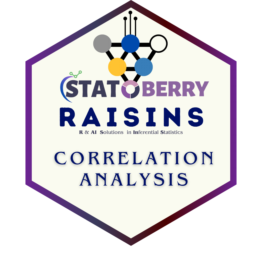 Discover R A I S I N S (R & AI Solutions in INferential Statistics) - your dedicated platform for performing Correlation Analysis with ease and confidence. Simply upload your data to generate clean, well-organized correlation tables that clearly summarize the strength and direction of relationships among variables. Explore intuitive visualizations such as scatter plots, correlation matrices, and correlograms to better understand patterns and associations in your data. With interactive options and clear statistical summaries, RAISINS helps you transform complex relationships into meaningful, easy-to-interpret insights - all within a smooth, user-friendly interface.